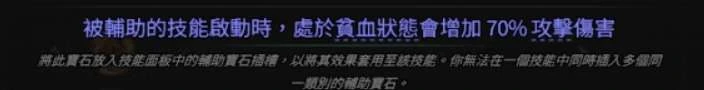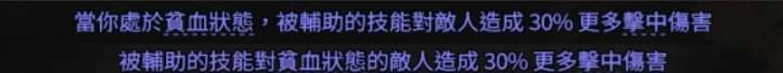 游戏里带条件的辅助技能大多给 30% more 伤害,而处刑辅助的增伤效果还要更超模,是贫血流的核心增伤组件之一。