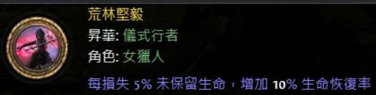 仪式行者可以透过缚舌来撑暴率,在百暴之前,透过幸运暴率让整体成长曲线更平滑。我用的是瓦过的缚舌,加 9.72% 暴率,这样在有蓝球的情况下,暴率只要拿到 400% 就能百暴,天赋里点出 + 1% 暴率的节点,再配合装备和珠宝,很容易就能达到。