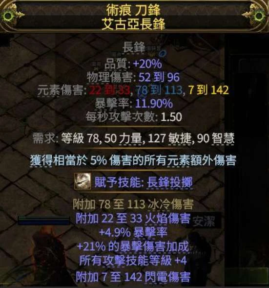 透过闪电之捷 - 护甲破坏 - 混沌同调 - 乌尔尼多的拥抱 - 厄罗克的锻鍊 - 随便一个增伤辅助这样串,莫名红球拿的很顺而且数量足够,刷图能用上但打王不行。